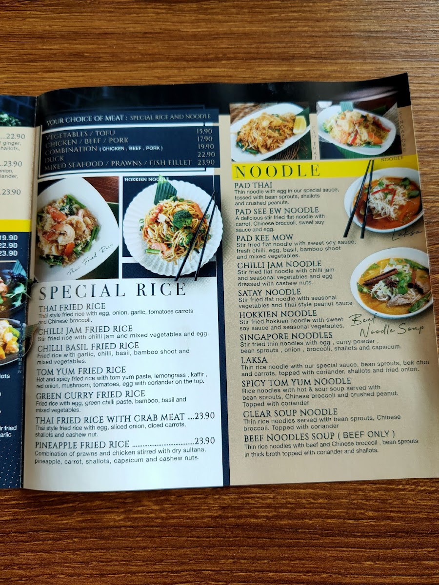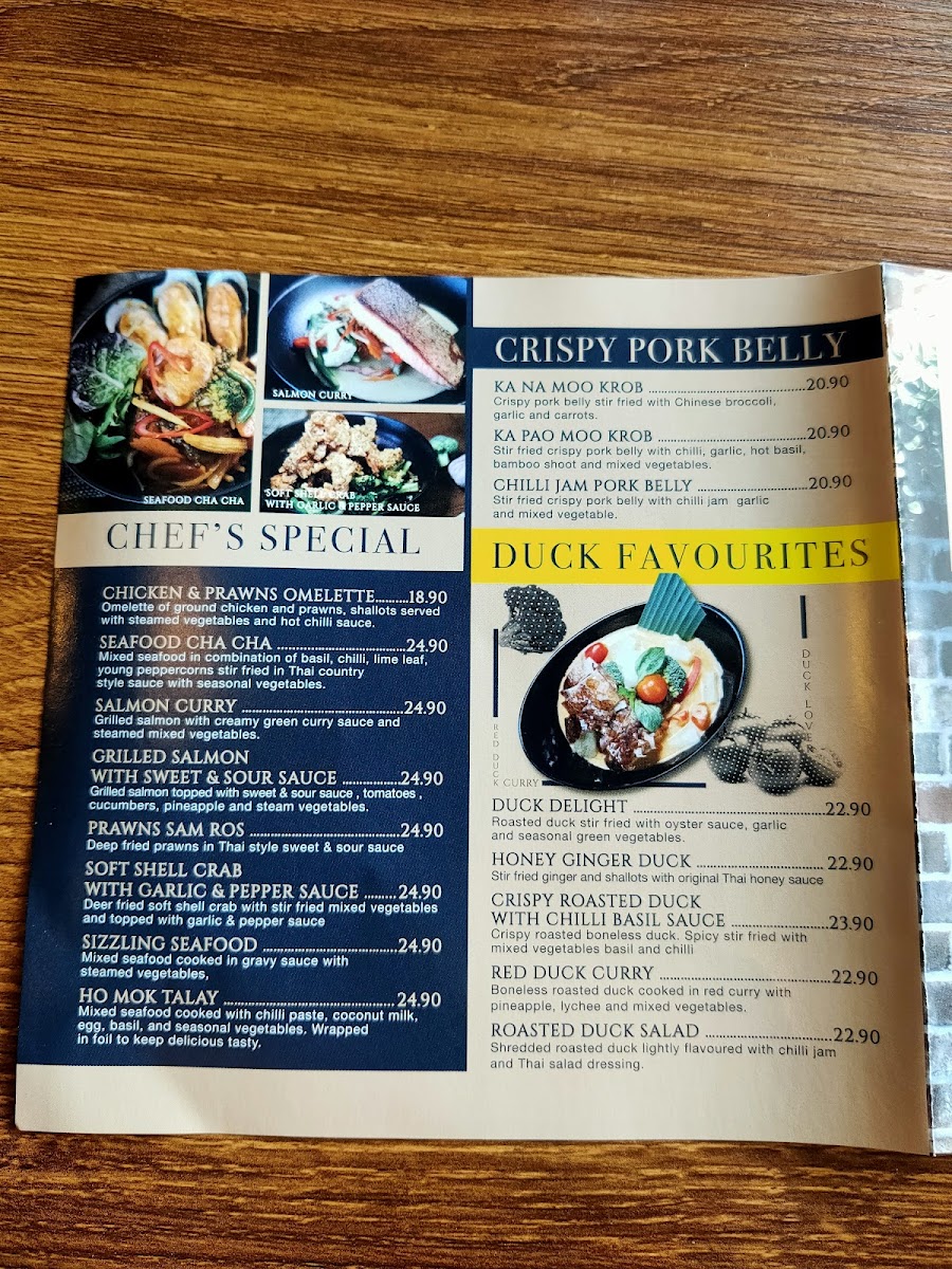 For those who adore crispy textures, the Crispy Pork Belly dishes - Ka Na Moo Krob, Ka Pao Moo Krob, and Chilli Jam Pork Belly - are indulgent must-tries. Meanwhile, the Duck Favourites like Duck Delight, Honey Ginger Duck, and Red Duck Curry add richness and depth, especially when paired with rice. Finally, no Thai meal is complete without dessert - the Wrapped Sticky Rice and the iconic Sticky Rice with Mango make for a perfectly sweet ending.