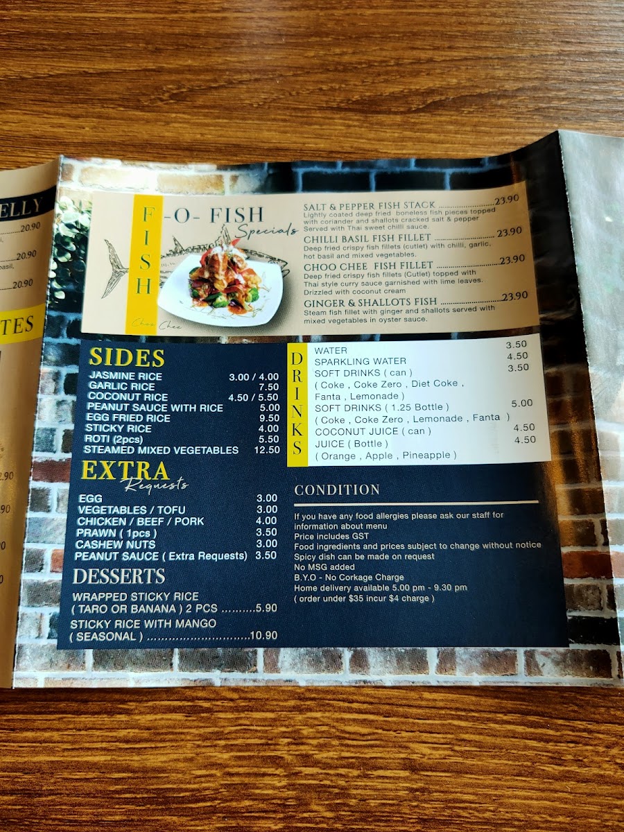 For those craving a stir-fried experience, dishes such as Snow Pea Prawns, Golden Pumpkin Stir, and the trio of flavorful sauces - Oyster Sauce, Cashew Nut Sauce, and Ginger & Shallots Sauce - deliver the perfect harmony of spice, aroma, and texture. Complementing these mains are comforting Sides like Jasmine Rice, Garlic Rice, Coconut Rice, Peanut Sauce with Rice, and the ever-popular Egg Fried Rice, ideal for soaking up every drop of sauce.