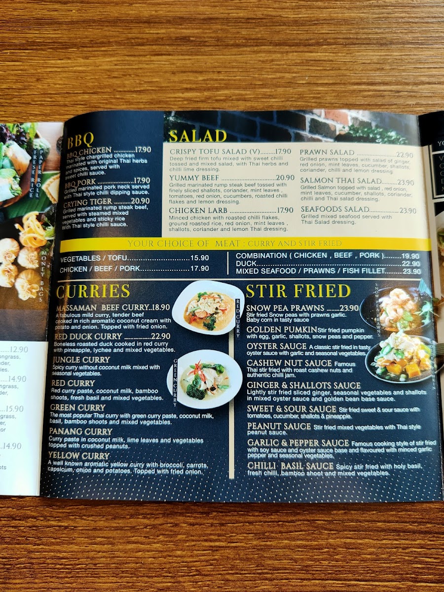 Thai Kitchen By Paula’s menu at Shop 15/360 Kingsway, Caringbah, is a true celebration of authentic Thai flavors, thoughtfully curated to satisfy both adventurous palates and comfort-seeking diners. The BBQ selection stands out immediately, featuring fragrant and smoky BBQ Chicken, tender BBQ Pork, and the irresistibly spicy Crying Tiger - a crowd favorite for meat lovers. The Salad section brings refreshing balance, with highlights like the crispy yet light Crispy Tofu Salad, tangy Yummy Beef, and the vibrant Chicken Larb Prawn Salad, while the Salmon Thai Salad combines freshness with a hint of indulgence.